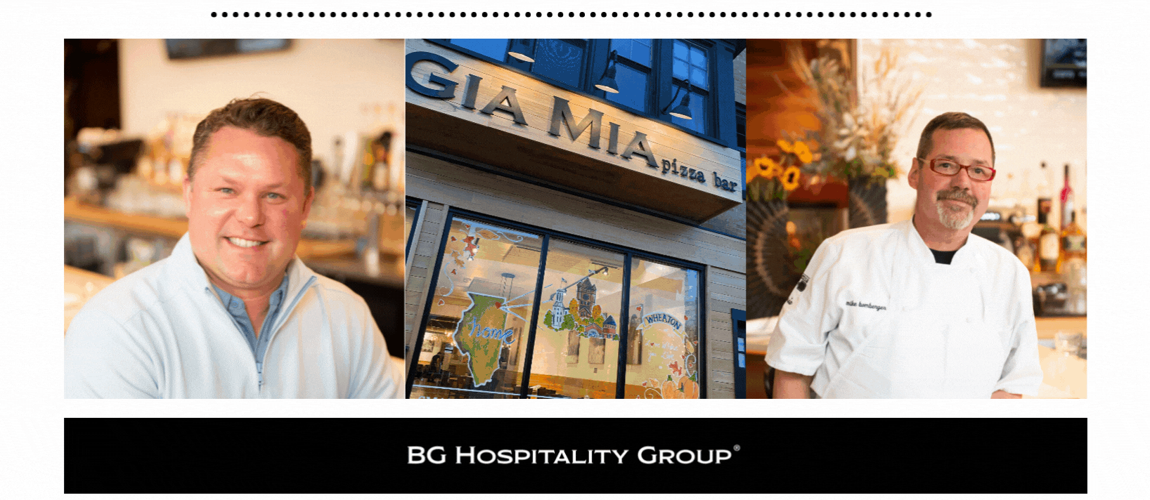 The BG Hospitality Group champions the creation of unique chef-driven, farm-to-table creative plates and an innovative casual dining atmosphere that differentiates us from the competition. Our uncompromising quality and restaurant concepts stand out from the others in the Chicago area, with a current total of six GIA MIA restaurants located throughout the western suburbs, Livia in Downtown Geneva moto imōto located in St. Charles and our newest concept in Geneva and Elmhurst, Ella’s Italian Pub. The unique designs both in and outside of our spaces were developed in mind to help complete the overall dining experience for our guests. We continue to strive, evolve and grow to accommodate our guests and to create a positive memorable experience.